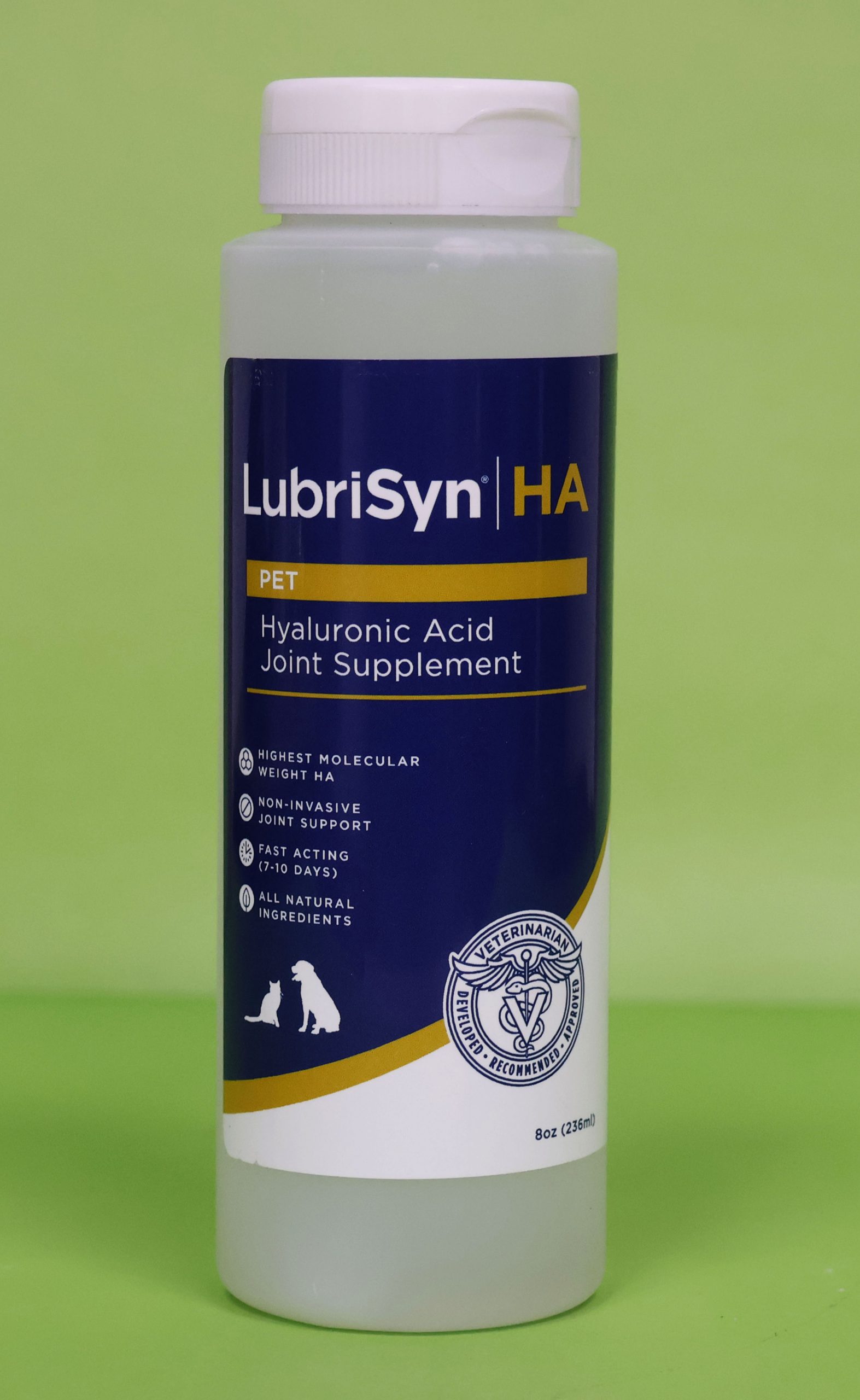 Composición: Ácido hialurónico presente en Lubrisyn HA posee un alto peso molecular y similar al que produce el cuerpo de forma natural, presenta una alta absorción y su fórmula líquida se metaboliza rápidamente.